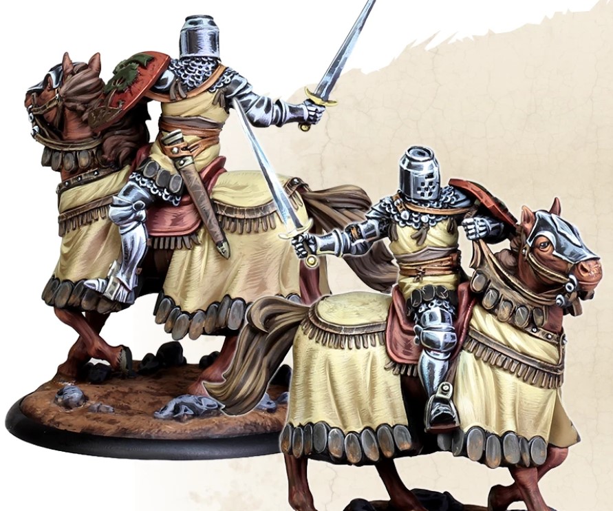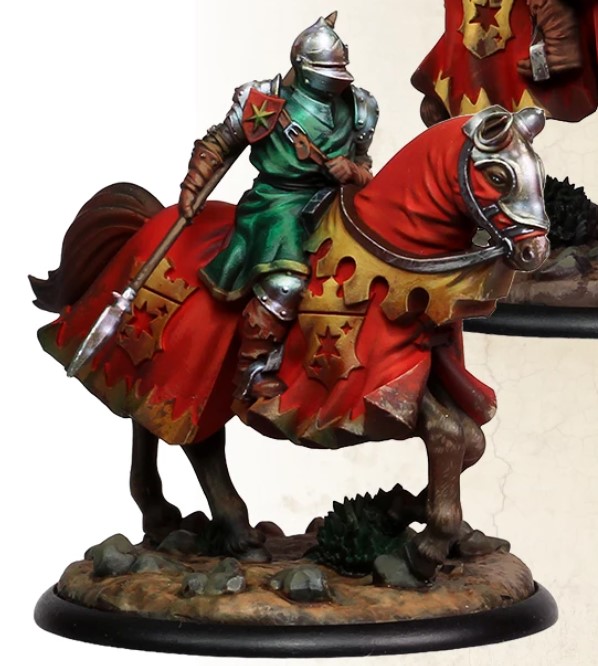 Credit: CMON. Painting Credit: BigChild CreativesSpear - Lance cavalry is a menace to the game now with multiple Units featuring in many lists catapulting them into a high standing. Having a Hedge Knight that blends nicely into the Unit is so cool, and I am glad there aren't too many details that will force it to look out of place in the lance cavalry Factions. However, with the stars all over the model, I will be painting it as a Dondarrion knight since it is begging for it.