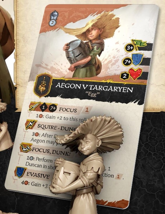 Credit: CMONRules Design - Aegon will only ever be taken in a pure Neutrals Faction with Duncan due to his abilities revolving around the Hedge Knight and the limitations on Neutrals in other Factions preventing you from bringing them both. Egg’s rules provide free Actions between himself and Duncan. In The Miniatures Game, free Actions are an incredibly strong benefit to which many armies have utilised for a long time. Free Actions in Tactics could end up being the same, however, the cost of bringing Egg just to do this would take away from having a Champion that could do stuff on their own like Jaqen H’ghar. Could powerful buffs be balanced due to the cost of them?