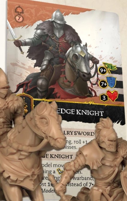 They have an abysmal Morale Stat along with an okay Armour Save and a chunky three wounds. We can’t see the melee attack but if it is not a powerful ability the Hedge Knights will be dead on arrival since they are far too expensive for what they bring. They do have something that adds dice and a reroll, as well as some movement manipulation so it could be a non-named version of Duncan the Tall. We will need to see the full card before we can judge them, but this might be a unit used in the Miniatures Game more so than Tactics.