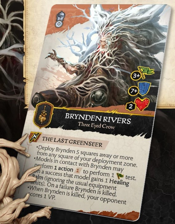 Credit: CMONRules Design - The biggest shock here is the zero cost to take the Three Eyed Crow. The miniature to represent George R. R. Martin was also free but did nothing to affect the outcome of the game. The Three Eyed Crow can produce Healing Balms that can be incredibly useful in protecting the high wound members of your warband. Greatjon Umber, The Mountain, Robert Baratheon, or even Gendry would adore additional Healing Balms. You may lose 1VP on the Raven’s death which is quite possible from just interacting with him, but this is not too significant in the grand scheme of the game.