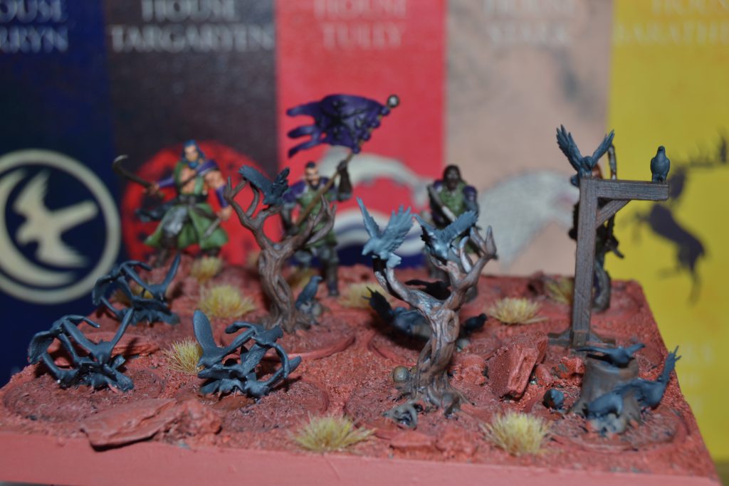 My first game was the modified Game of Thrones mission against a Rightful Heir Stannis List. It contained Stag Knights, Lightbringers, Queen’s Men, King’s Men, and a Crownland Scout Units, with Justin Massey, Andrew Estermont, Bryne Farring, and a Dragonstone Noble for Attachments, and Shyra Errol, Patchface, Maester Cressen, and Alester Florent for NCUs.Early in the game a clash broke out in the middle of the board between Queen’s Men Stannis, and Daario’s Flock of Crows. Surprisingly, Daario held on against the Unit and dealt considerable damage to Stannis from the get-go. Dauntless being a new ability on Daario worked wonders with the 4+ morale, but the extra keywords made them a brutal force. By the end of the clash, it was just Stannis with both To The Last tokens expended failing a charge over the corpses of my crows in front of my archers. Queen’s Men couldn’t move well, do enough damage, or even survive enough to be worth much.