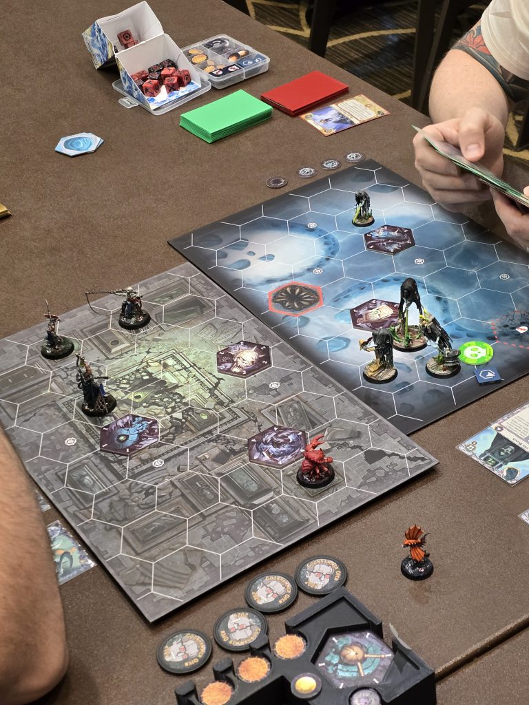Sadly, I didn’t prep my event bag quite as well as I had planned. I did think to bring extra dice and boards, just in case they were needed. However, I forgot to bring a set of objective tokens which did become relevant during the second round. Fortunately, Underworlds players continue to be the coolest and another player stepped up to loan them out.