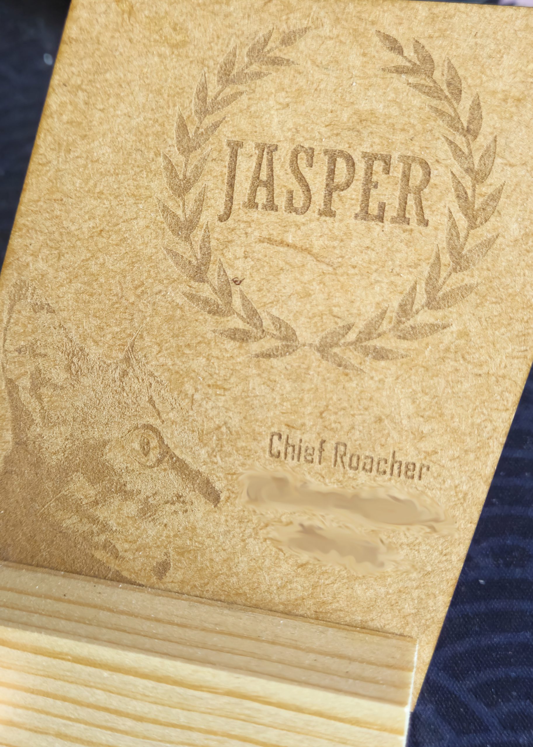 This project introduced me to new techniques like wood staining and roughly-carved lettering with a rotary tool.