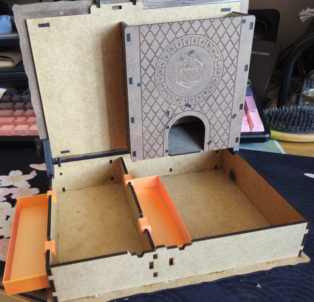 The H2D opens the way for projects that combine 3D printing with laser cutting, such as this DnD player kit.That was my largest and most complex laser project thus far and used plenty of third-party MDF (regular sheets from craft stores), different wood stain colors, and some 3D printed inserts. The H2D's laser performed admirably on sheet after sheet of MDF and the pieces fit together with only minor sanding and glue. The small imprecisions that required sanding and fitting were so minor that they could be attributed to ordinary differences between my MDF and the one used by the designer. A very successful and fun project.