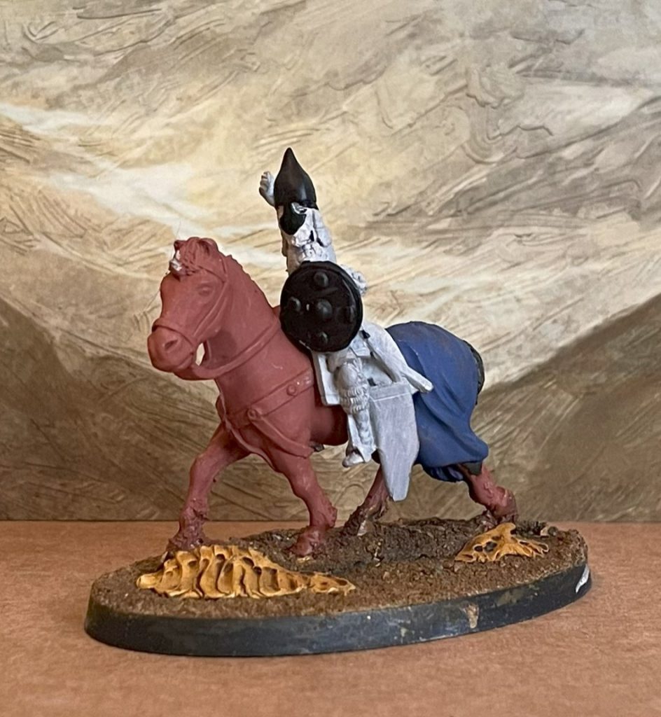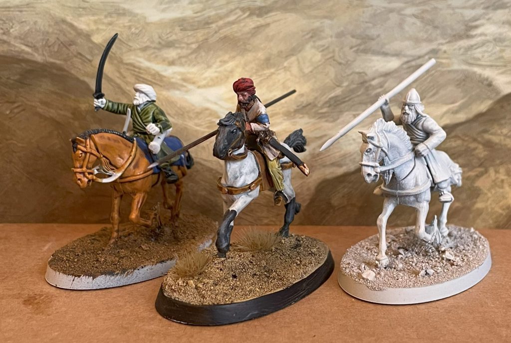 and the Half-PaintedInstead we'll take three regular Mamluks, with barded horses, composite bows and spears. To show Usama's great wealth, we'll take medium shields too, and given his incredibly complimentary tales of the great strength of the Mamluks he knew, they'll all get the Damascus Steel ability, so that opponents don't recieve shield rolls - punching right through horse and knight alike! That all comes in at a chunky 84 points. Usama will - as you'd expect - accompany them on the field.