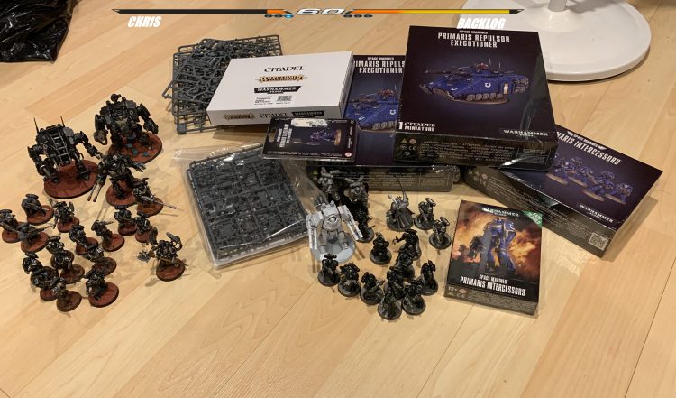 CHRIS: Okay, we’re back, your favorite (?) brothers stumbling blindly through learning how to play 40k from the ground up. I’m Chris, the older brother who is just getting into the game. Over there is Drew, my sherpa into the world of throwing money, time, and self-esteem into a deep dark hole from which there is no escape.