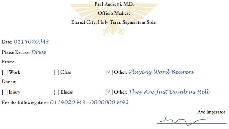 CHRIS: There’s not a lot of room for my opinion of you to go down but if you’d chosen Word Bearers OR started taking medical advice from Greg somehow I’d have found a way.