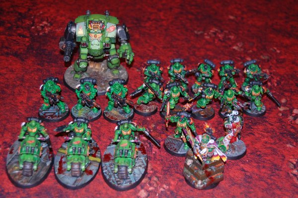 Allan's full Crusade Force in all its glory.CHRIS: And guess what? Josh and I both completely forgot to use the Orbital Bombardment strat, despite the fact that we talked right before the game about how it would be cool. I was too busy watching my beautiful green boys reenact the Battle of Cannae (which side? Read on…), I don’t know what his excuse was.