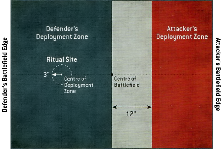 DREW: We ended up with The Ritual, which is a mildly complex mission - the Defender scores by having their Warlord hang out in a 6” wide circle on the map to perform a ritual by way of one or two different Actions. The Attacker scores by putting the enemy Warlord in the dirt. Both of them have the Seize Ground objective, which scores from claiming two objective markers and having more objective markers than your opponent. As a further complication, the Defender’s Warlord needs space for the ritual, so you can’t have any terrain or objectives within 6” of the center of the circle.