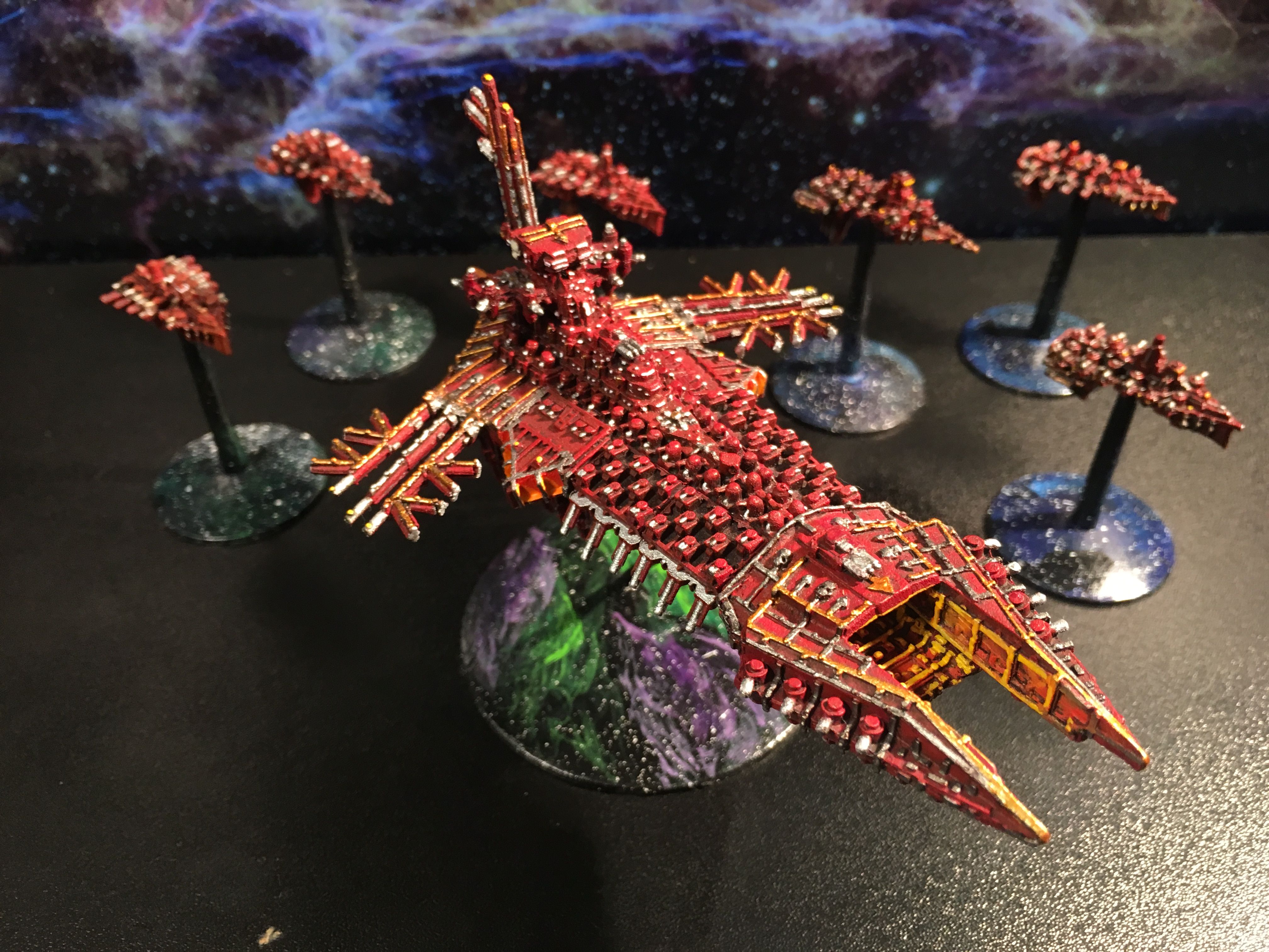 Chaos fleet construction is very similar to Imperial fleet construction - which makes sense given that Chaos fleets are largely 30k era Imperial fleets. Which is great because that means I can just copy/paste from Charlie.
