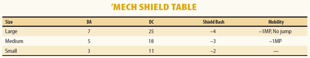 Mech Shield Table from TacOps Advanced Units and EquipmentJack: Claws, the lance, and maces are all actually usable weapons now, which is great. The Pouncer X might actually be an interesting mech now with the charge bonus. The biggest change here is to how shields work, as this simplifies them a lot. Every time I have to look them up in TacOps gives me a headache, and this time I can actually understand what they're doing. I particularly like being able to raise and lower per phase - I can see wanting to lower it in the physical phase so you can punch for extra damage.