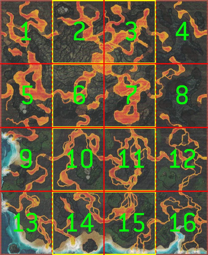 The southern half of the map is better, but not dramatically so. There’s still more magma and crust hexes than I think most players would like to see, but the elevation changes are a bit more readable, the magma flows are a little narrower, and – thank the Great Father – we have some actual goddamned trees for cover here. Not a lot of them, but they’re there! The art can still be a bit confusing with these maps, as some hexes with a clear magma flow through them are unmarked and thus treated as clear terrain, but I’ll take these over the mess that is trying to read the elevation changes near the magma dome.