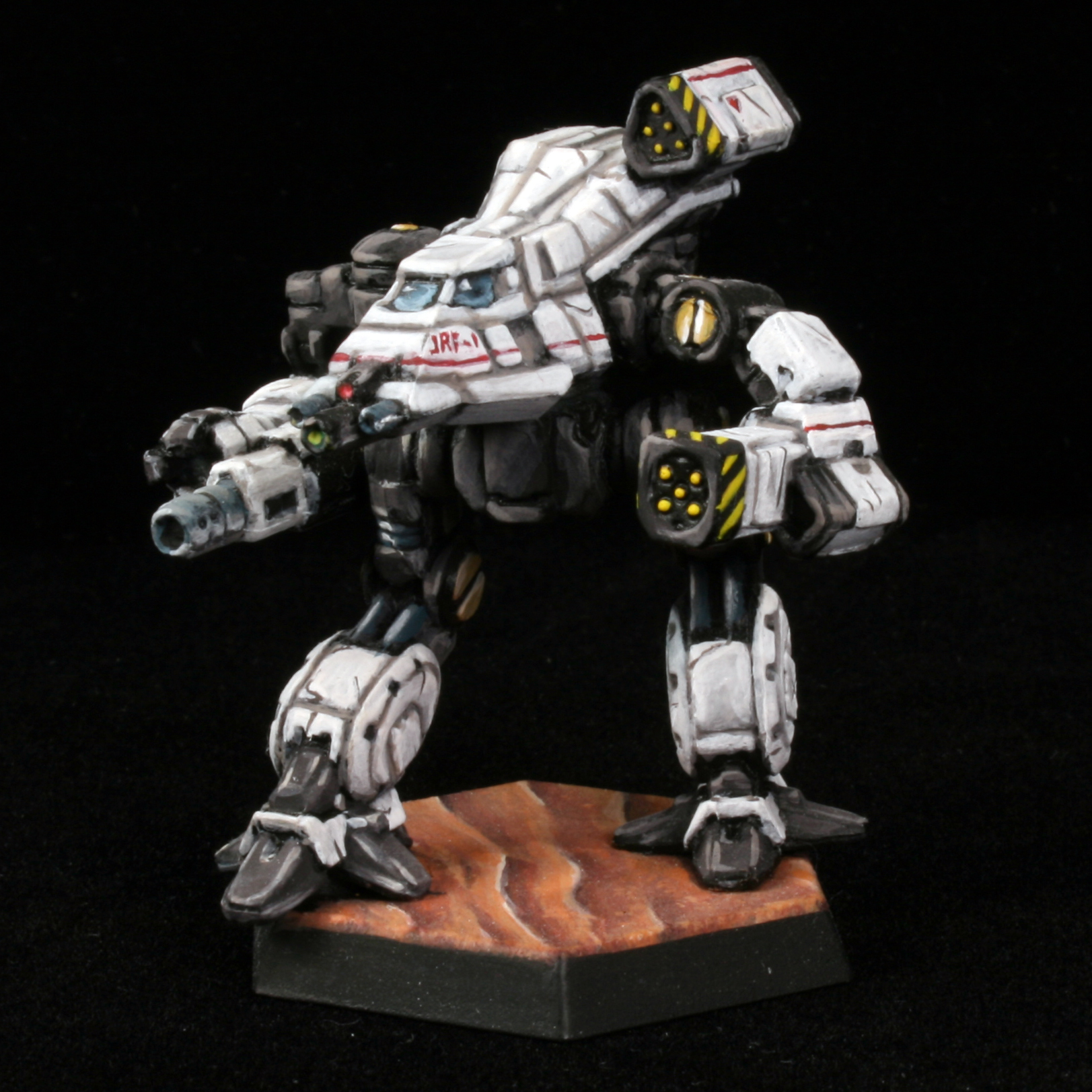A very simple skirmishing variant, this has an AC/10, ER large laser, two LRM 5s, and two machine guns. As always, I hate the machine guns. I don't think they add anything to this variant, and the AC/10 only has one ton of ammo. While 10 shots is vaguely adequate for most games, it means you can't take precision ammo as 5 shots is definitely inadequate. Swap the MG ammo for an extra ton of AC ammo and I like this a lot more - the weapon loadout is solid for being able to engage at range while moving in to hold range around 5-6 hexes. 1,223 BV is only a bit more than you'd be paying for a wolverine, and you pick up a lot of ability to do damage.My rating: B-