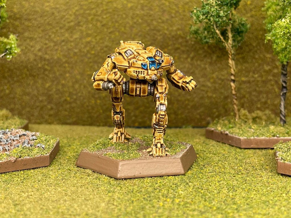 Hastati Sentinels Mercury. Credit: Jack HunterI will say that I do love the "just a little guy" energy of this model. He is coming to beat you to death and commit crimes. A fun fact about the Mercury is that the small lasers that this thing has for some fucking reason actually end up creating the Omni-Mech in the lore. They built them to be modular and connect up on the fly for easier repairs, and Clan Coyote would later refine that modular system to accept other weapons and equipment, which led to the Omni-Mechs we all know and tolerate at Thanksgiving despite their problematic views. I just wish Uncle Battle Cobra would stop ranting about how all Spheroids deserve death and that the only way to remain pure as a society is to kill anyone who was exposed to the taint of Spheroid culture. Really makes it hard to focus on the stuffing.