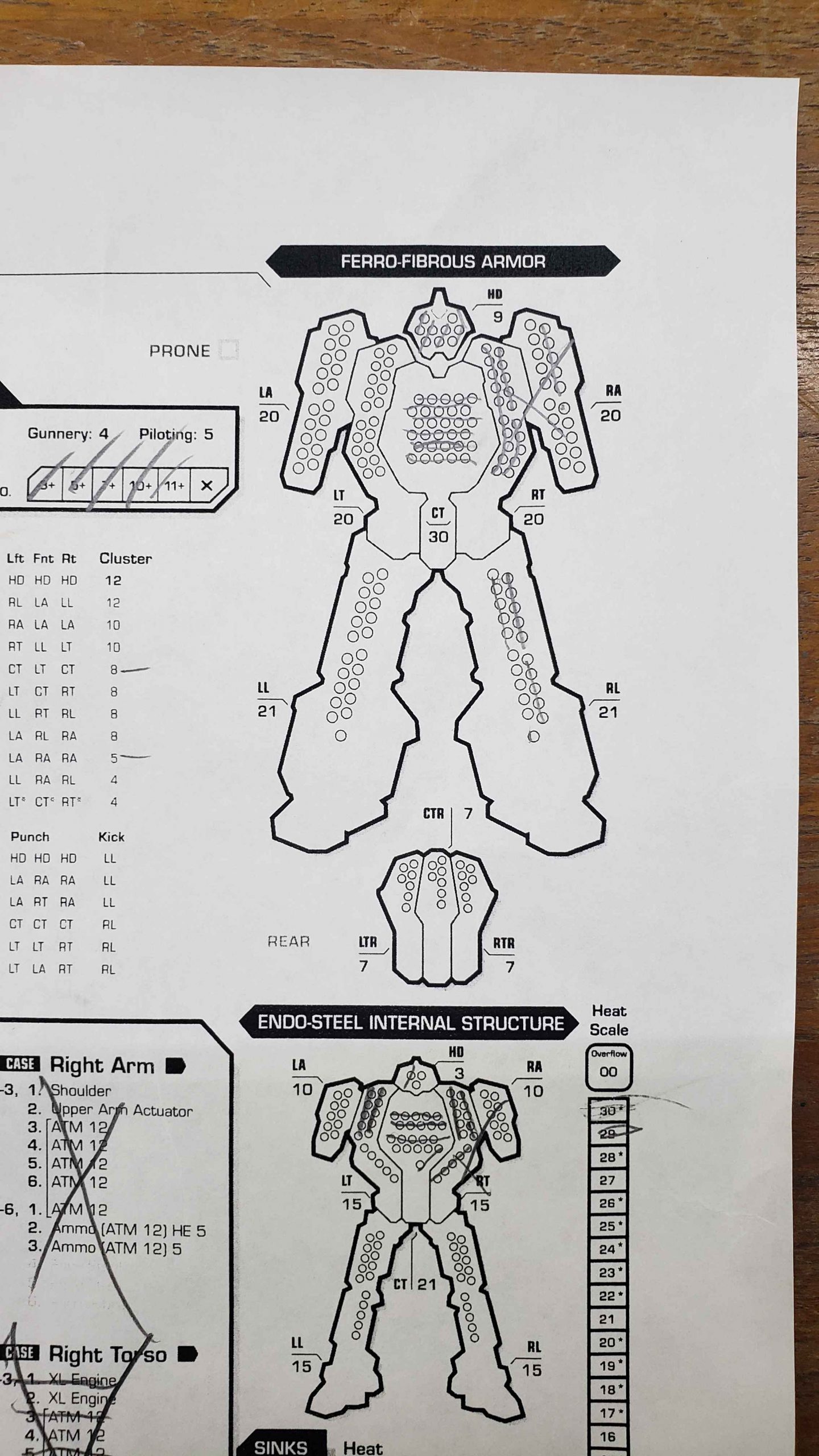Peri has the sheets somewhere but when we did our last test game for this of the 6 or 7 'Mechs that died only one of them had any real damage on both sides and it was the one that just backed itself somewhere that things could not effectively get around it. Rules that encourage you to just wall pin instead of maneuver just from the knowledge that if you don't you're just going to explode?
