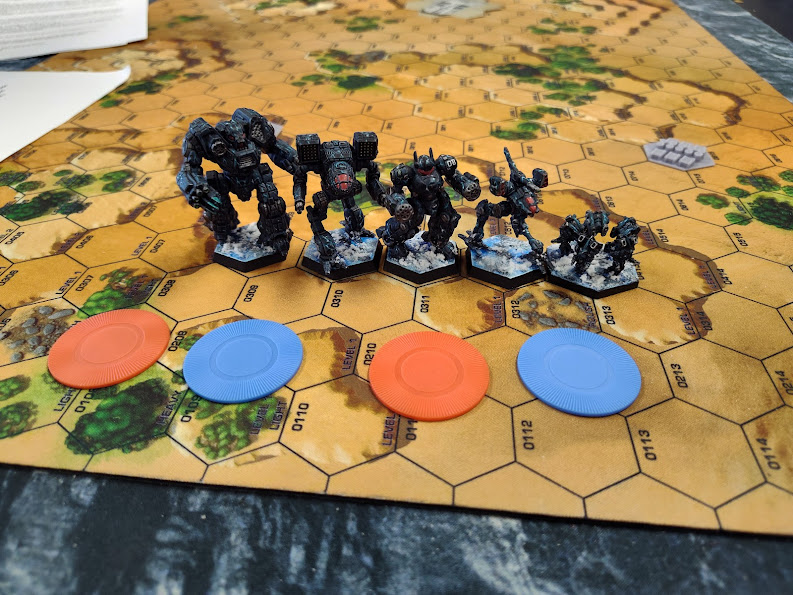 You may notice that I never really mentioned my battle armor in my round-to-round writeups. Sadly, this is because I completely misplayed them every round, too focused on dropping them someplace protected quickly so that 1.) they wouldn't get shot on their deployment turn and 2.) I could get the Blitzkrieg back to 7/11 speed ASAP, and they basically never engaged in a significant fight ever. I was actually in range to fire the heavy machine guns maybe twice, at medium range, and they never hit anything, the regular MGs didn't do much better, and Anti-Mech 2 never came into play. In the future I don't think I'm likely to bring magnetic BA unless I have either an alternate delivery system (non-mag-clamp) or they're mounted on a jumping unit (whose jump MP isn't penalized by mag-clamps); the slow ground speed just throws me off.The Banshees did great work across all three rounds. People are not prepared for the kind of TNs you can get with large-bore Precision AC rounds, and with their basic tech they're cheap bricks who won't die unless you find their ammo crits. The 3S requires just a touch of care with heat-management, but nothing too taxing.