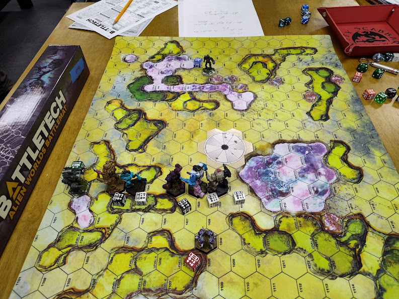 I was the last to get my food at the Waffle House by a wide margin, but fortunately my ride didn't leave me in the time it takes me to inhale double hashbrowns all the way (and fortunately the tournament venue was close enough I could've walked if they had), I was a bit concerned about the host store looking at it from the outside, but it truly did seem Bigger On The Inside. I always find it interesting to see the differences in complexion between various game stores, and the vibe I got from Game Kastle Greenville's stock levels was that they had a much stronger Warmachine scene than my home stores in Atlanta, and an interestingly different array of hobby paint/pigment/basing material/etc vendors, but less investment in BattleTech. That was just a touch frustrating since they were offering 10% off of BattleTech to tournament participants as a thank you, but the only real draws for me out of what they had were the Black Remnant pack (which I only want for the Blood Asp and Flashman #2) and the vees box with the Hetzers (which begs the question of whether I don't play more vees because I don't have more vees, or if having more vees wouldn't change that). Still, I came away with a cool clearanced metal-era Warmachine Satyxis pirate queen mini which I'll probably end up using as a Tiefling PC somewhere down the line, so I can't complain too much!ROUND ONE: KNOCK DOWN