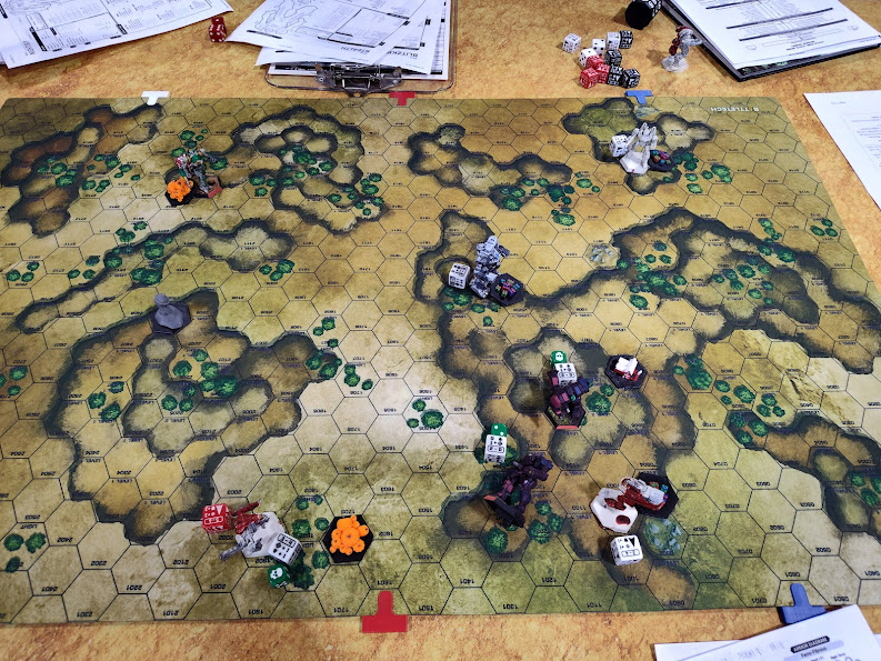 Speed of play continues to be the biggest impediment to BattleTech’s effectiveness as a tournament game, I think. It’s certainly possible to play Classic at a quicker pace - one of our players, a veteran of the Infinity tournament scene, averaged more than nine turns completed per game across this very tournament, in two-and-a-half hour rounds - but there remain a lot of hurdles. I made my own speed of play a goal for this tournament… finally memorizing the front/rear hit chart, smoothing the process by which I calculate to-hit numbers, building a Box of Doom for my cluster weapons… and I still personally topped out at four rounds of play.What went wrong? That’s a complex answer, because there’s a lot of factors that fed into it. One issue is that everyone has their own way of approaching time-consuming aspects of the game, especially the GATOR math, and sometimes that approach is sedimented by decades of habit. My third-round opponent, for example, acknowledged that it was a good idea that I was working out math on paper each round… and then continued to just sit there and stare at me while I was doing it, because he preferred to do his math off the cuff right before rolling his dice. That might’ve been fine if he was quick and accurate, but he frequently forgot to include range modifiers, and me having to double-check him just added more delay. At the other extreme, that very time-efficient Infinity player I mentioned encourages just rolling dice and only stopping to do math if the result isn’t obvious (e.g. a very low roll on a longer-range shot is obviously a miss, a very high roll on an easier shot is pretty obviously a hit, etc.), an approach which I find EXTRAORDINARILY stressful because it allows (me, at least) no time for careful odds-based fire allocation.