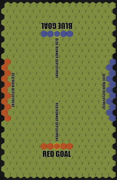 My Wraith, naturally, got designated as my runner, and my opponent gave the nod to his Spider 5V. I deployed my Kingfisher in the center row of the board, opposite his Warhammer, and biased the rest of my deployment in the direction of the goal I was defending, while he went more balanced, with the Rifleman and Panther deployed in the direction of my goal and the Thor and the second Spider deployed closer to his own goal.
