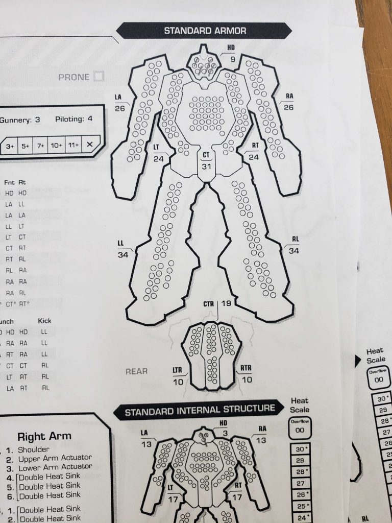 This was the first shot of the game.This is a photo of a record sheet for an Awesome AWS-9Q, a 1875 BV Assault mech that I had upgraded to a 3/4 pilot for a total cost of 2475. It died to the first shot fired in that game to a random gauss rifle. I generally play 10,000 BV games, so that was a full quarter of my points going off the table to random chance. I have also had a game where an Adder fired it's head mounted Flamer and one shotted another AWS-9Q with a ridiculous through armor critical that hit the Gyroscope twice. Battletech is a game where you really, really don't want to sink all of your BV into a small handful of mechs.