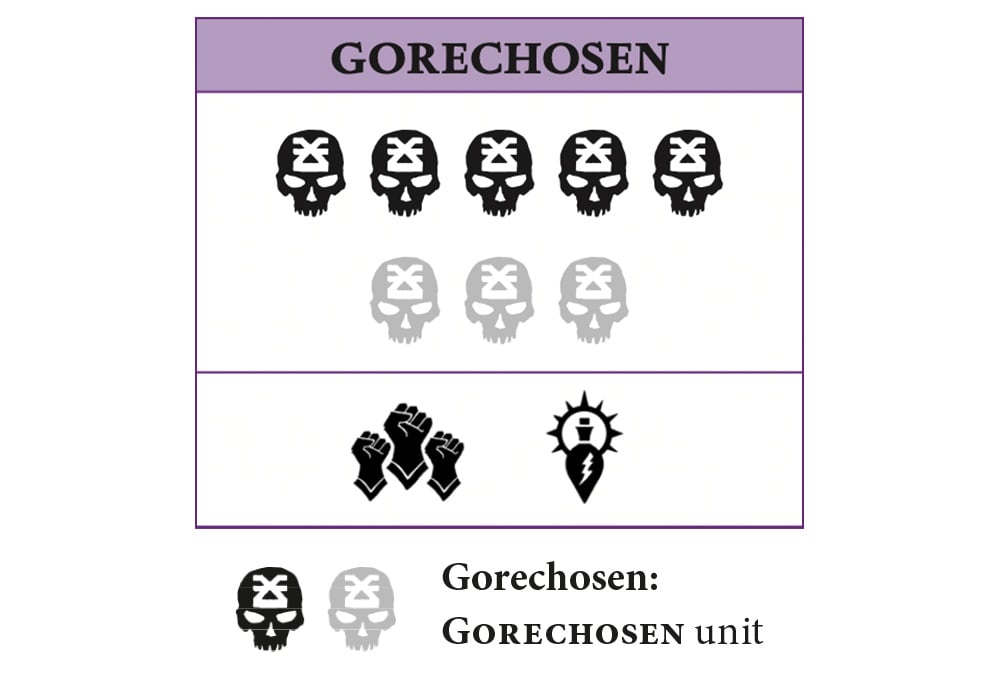 For the sake of clarity, the following units have the Gorechosen keyword: Realmgore Ritualist, Bloodsecrator, Gorepriest, Skullgrinder, Aspiring Deathbringer, Exalted Deathbringer and the Bloodstoker. Confusingly, not the Gorechosen of Gromm.