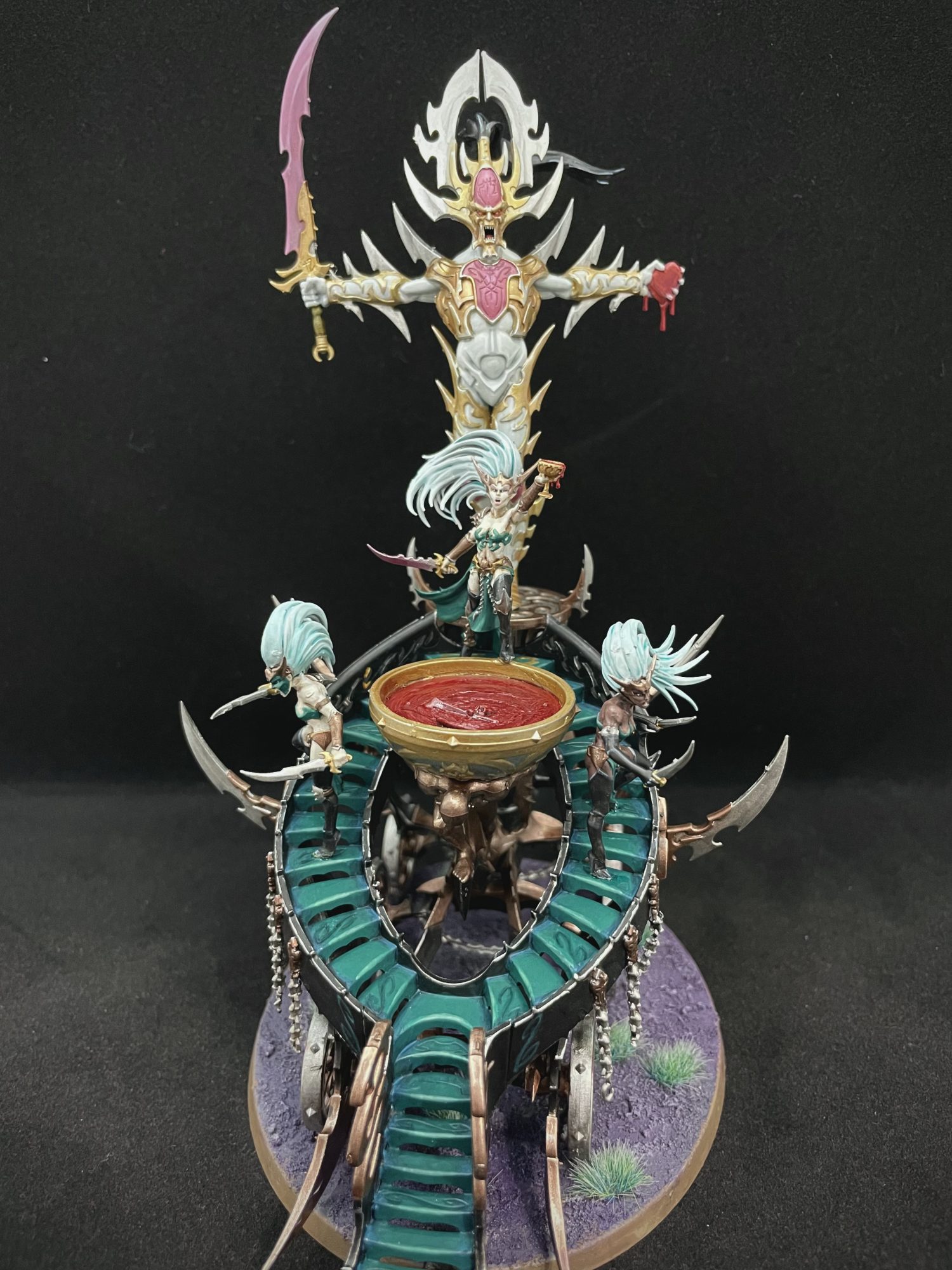 Some tough calls needed to be made here about what to cut, as the general trend is that things got more expensive. A Totem to buff the Witch Aelves was really tempted, but not in the cards. Luckily between the True Believer Trait, Hagg Nar and Blessing of Khaine we can get that +1 wound from the beginning, and not need it after that. The Gladiatrix makes the Witch Aelves generally better, while Morathi and Blood Stalkers remain just as effective as before, even without the 24" range.