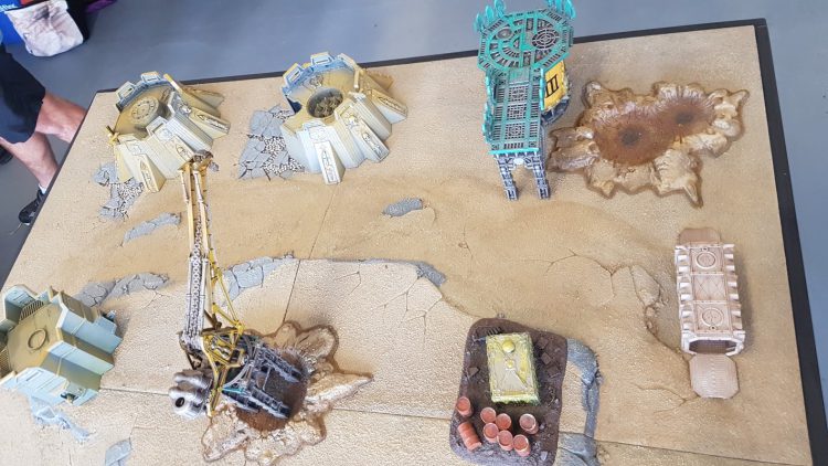 The table setup was good; they have a lovely selection of terrain but it was largely left to the players to set up so a couple of the tables were not as dense as the others. The lower four tables where Coda and I spent the bulk of our day were very dense and I know that it certainly hampered my first round of shooting. There was some confusion around the Obscuring trait but that was sorted out nice and quickly. We were mostly there to roll dice and talk rubbish.