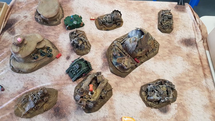 Add more terrain to the boards if you're the ones responsible for doing so. Because on the more terrain sparse tables there was generally nowhere to hide, a couple people got shot off the board in the first turn or two when facing the more shooty armies. I did okay in my first battle against a 3 Riptide list mostly because I got first turn and was able to at least cripple one with my Haulers before they were atomized in nuclear fire, after that it was mostly weathering a storm of fire trying to make DR save after DR save. It's probably one you should dump on the Tournament Organiser to organise before hand. Planet bowling ball gets old fast. After that I was luckier to be on the same terrain-dense table twice.