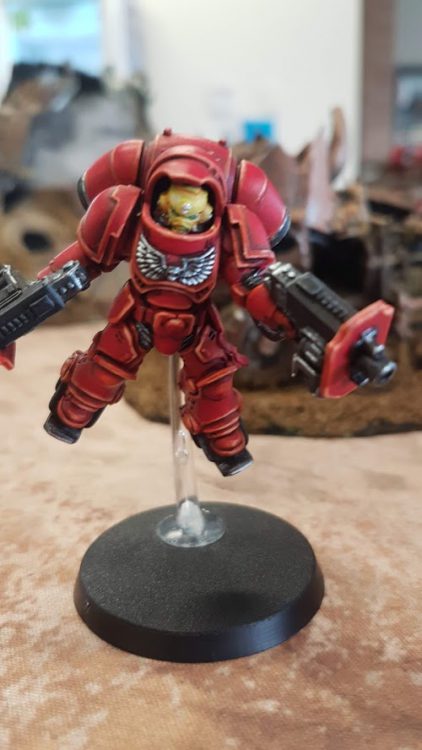Keith's Blood Angel - Photo Credit: BeanithOther highlights included me technically winning a game (my opponent had to forfeit, sadly) which ruined my chances of meeting Coda in the third round for the wooden spoon. I was briefly matched up against Coda's Ork foe but there was a mix up in the pairings and was redone. It was a shame only because he was my very first opponent in my very first tournament ever last year and it was roughly the same army too. Great bloke and a real pleasure to play against. If only I wasn't so shit with names and Coda could read his own handwriting. He even looked impressed when Coda mentioned we're part of Goonhammer, which was cool. Goonhammer has yet to elevate me to the desired rank of "Z-list hobby celebrities" but I do get to annoy editors with ellipses so who's to say whether it's good or bad...