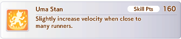 If you do decide to train Gold Ship (and frankly, what are you not training her for here?) you will want to make sure that your Gold Ship ends up with Uma Stan, Swinging Maestro, Breath of Fresh Air, and then any other speed or acceleration skills you can muster. An extra Blue recovery isn’t a bad idea either. Because Gold Ship moves up during the race with her unique, you probably don’t want to inherit a skill like Nemesis, but Mejiro Ryan’s Let’s Pump Some Iron! Is a great choice, as is Triumphant Pulse from Oguri Cap. Uma Stan is very valuable on Gold Ship because of the nature of her Unique, which pushes her from the back of the race to the middle pack, and Uma Stan then triggering helps her speed past the pack and overtake the lead runners towards the end.