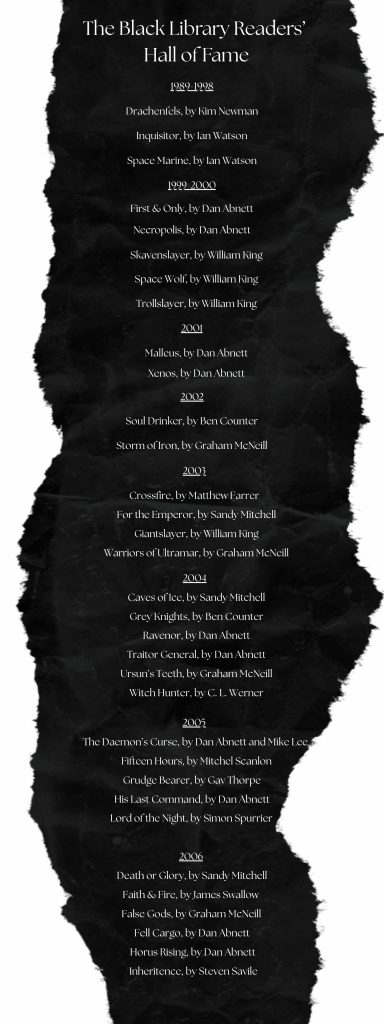 Through the votes of readers as well as our community panel of community voices, we’ll examine the entire history of the Black Library, induct the latest winners, and vote for the next round’s candidates every other week.