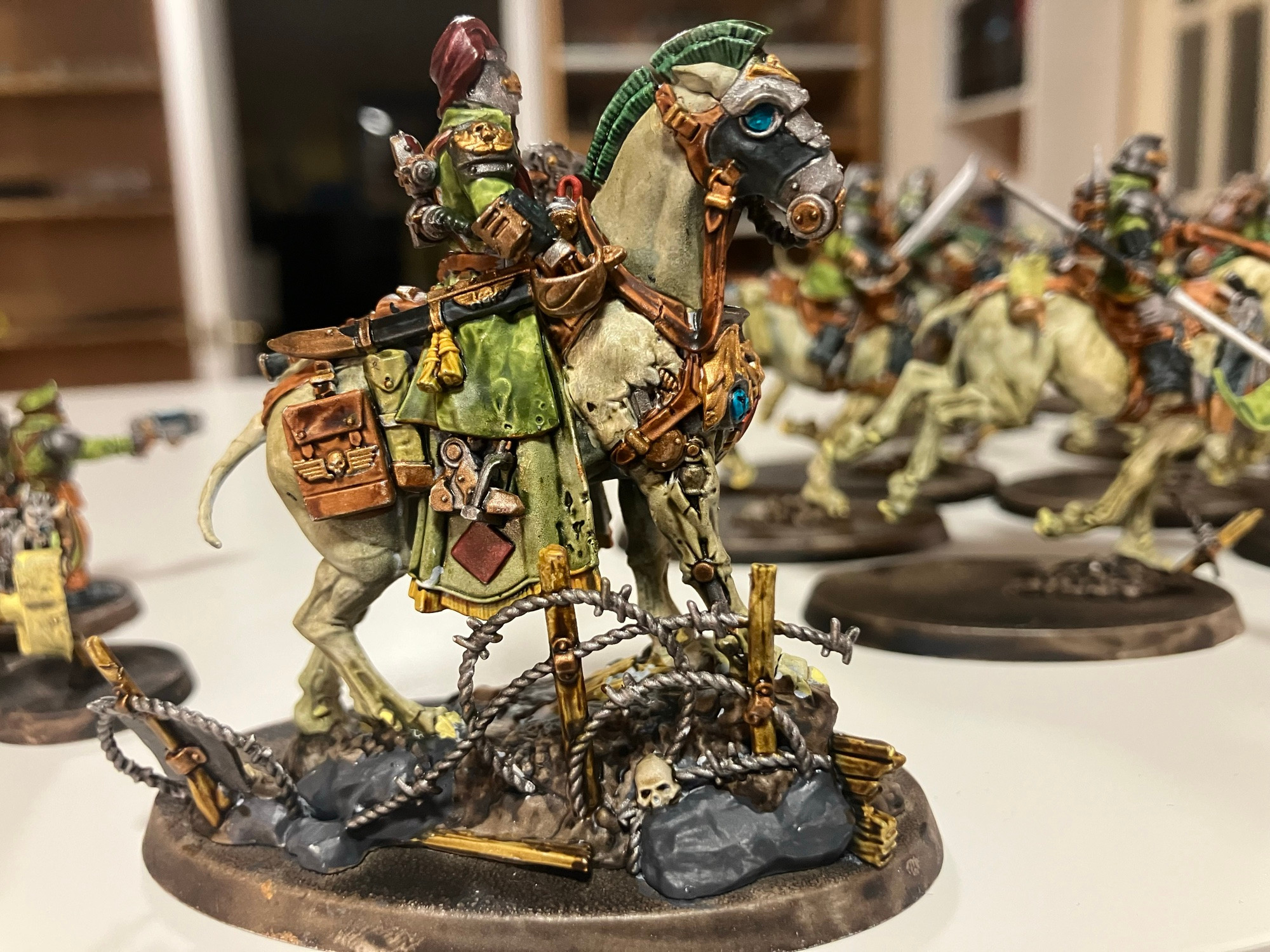 Image credit: John FrenchFinally, from the many-hued desk of Adrian Tchaikovsky comes some delightfully-painted Krieg cavalry.