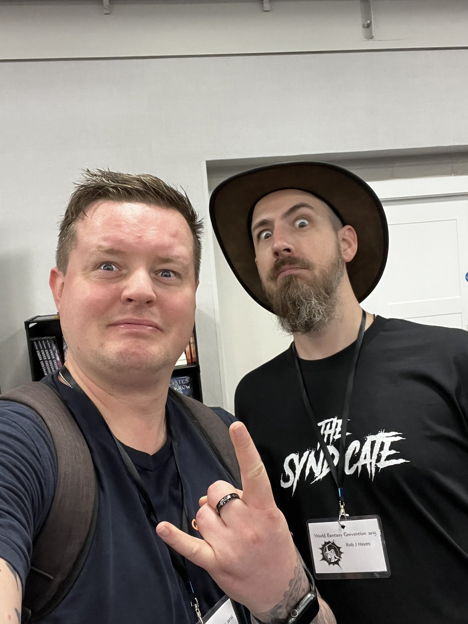 Image credit: Mike BrooksThen there was Ben Galley (Mournclaw) making the rounds and running into Rob J. Hayes (Anarchy's End, No Quarter).