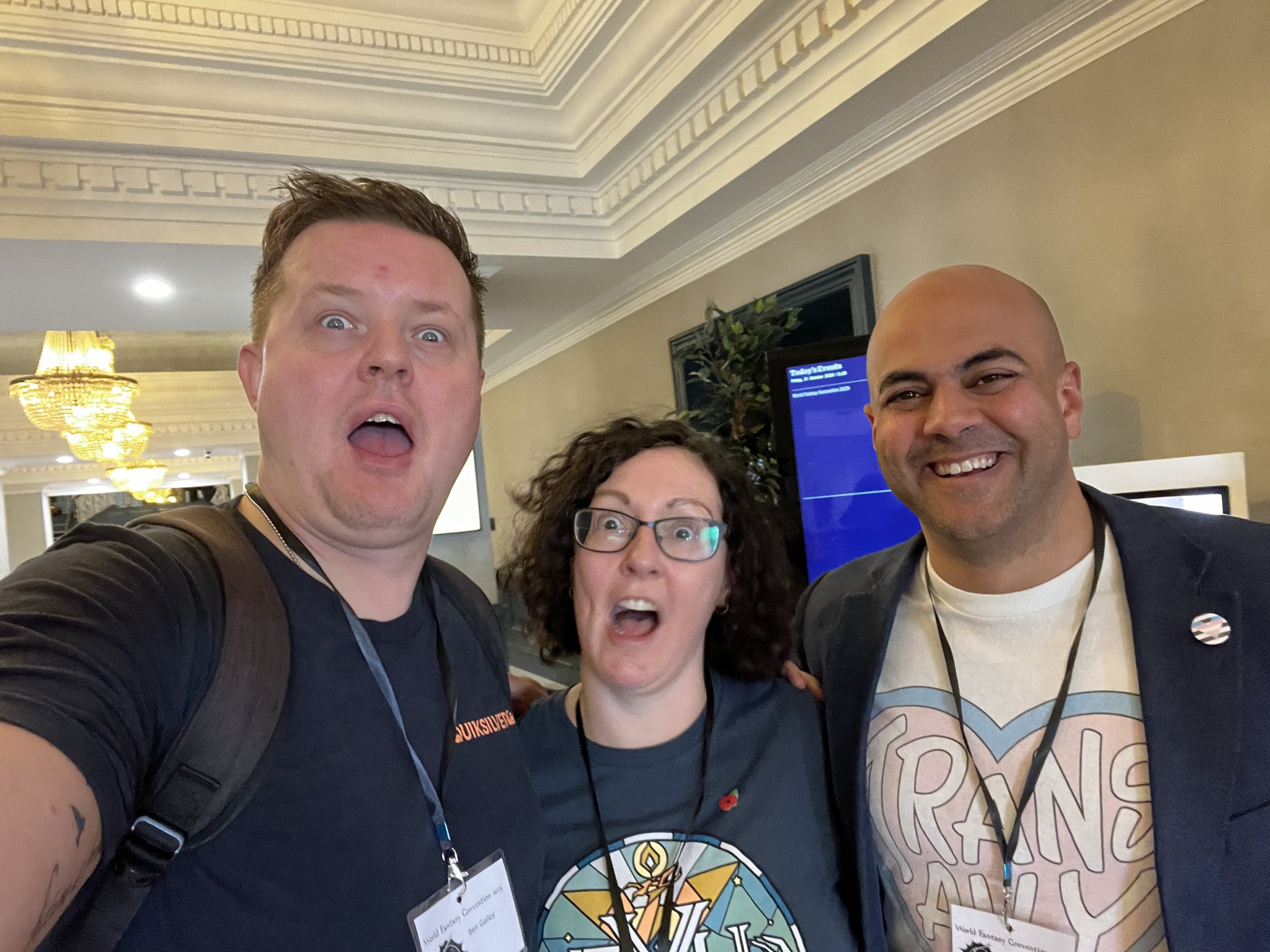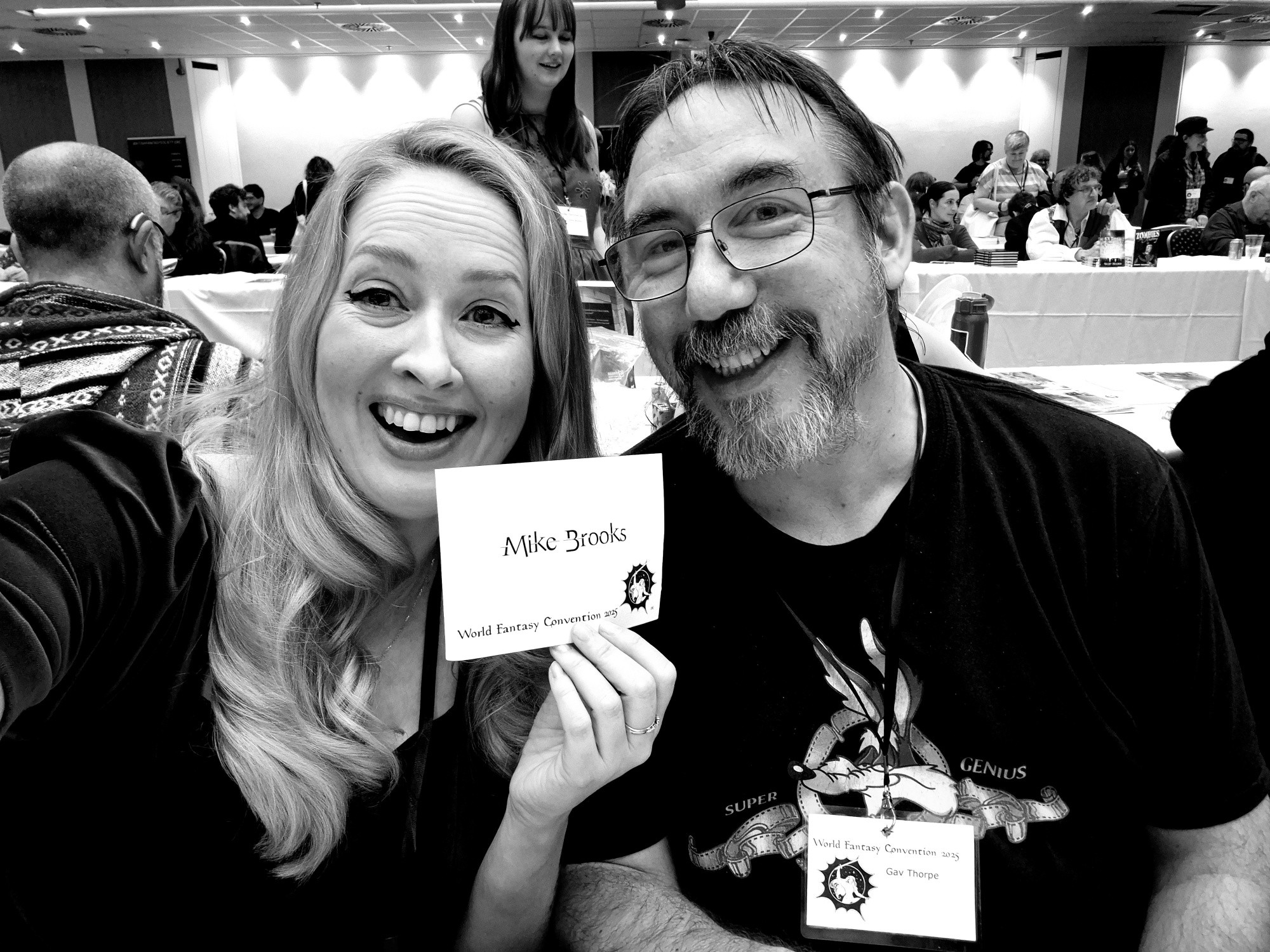 While next year it's being held in Oakland, the World Fantasy Convention being in Brighton this year meant a good number of Black Library writers were able to attend, appear- and even present!Here's Victoria Hayward (Deathworlder, Nightsider Imperialis) and Gav Thorpe (Kill Team, The Red Feast) good-naturedly trolling Mike Brooks (Voidscarred, Brutal Kunnin'). Gav mentioned seeing Andi Ewington (Da Red Gobbo's Last Stand) and John French (Dropsite Massacre, Ahriman Omnibus) as well.