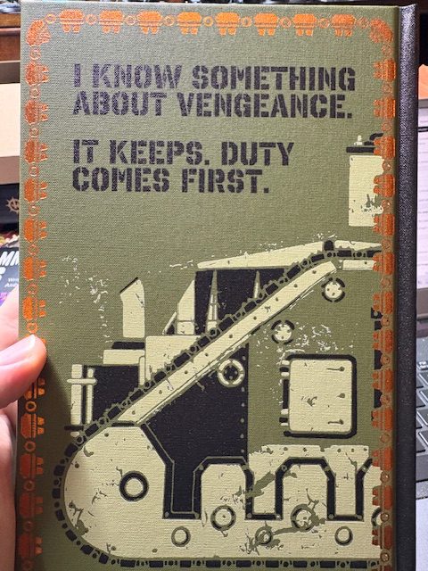 Speaking of the Steel Tread, after the Special Edition cover reveal last week of its sequel, Demolisher, I wrote this in reaction to the fact that both covers used the same art:In an alternate universe Games Workshop released Steel Tread with the back end of the Leman Russ tank on the cover and kept the Demolisher one the same, so when you staged them side-by-side you got to see the complete tank.