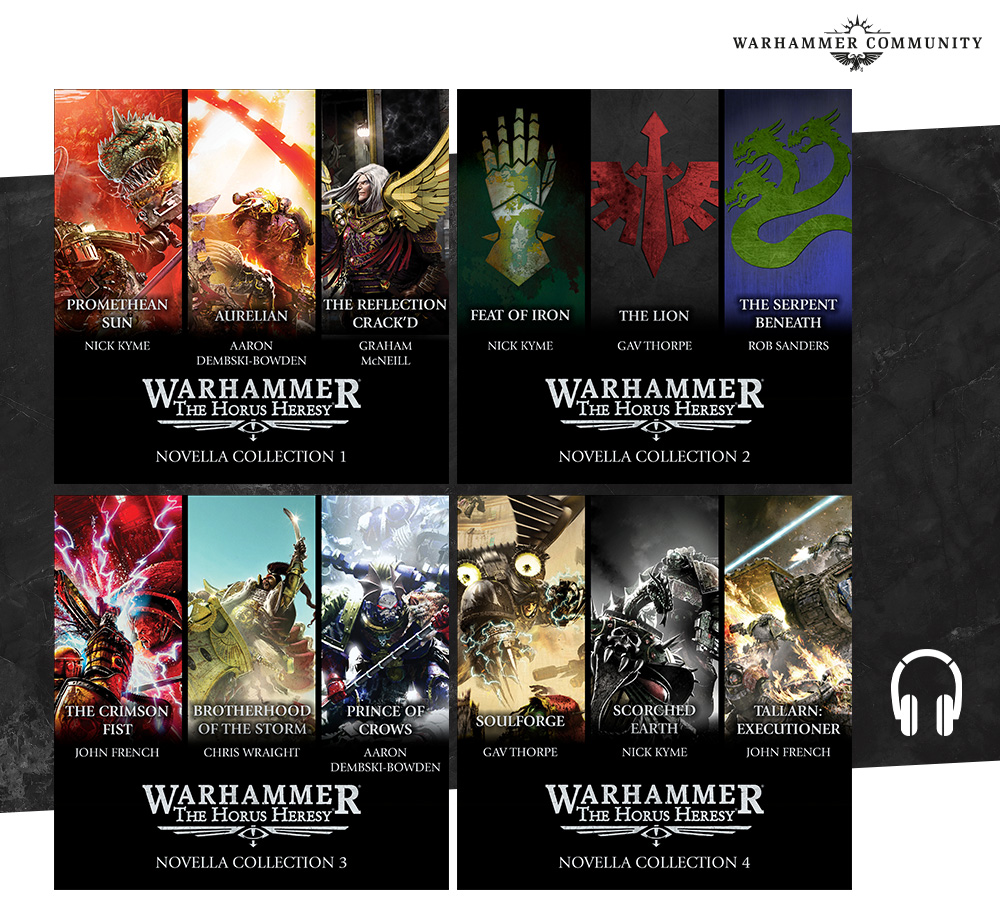 This was interesting- a new audiobook compilation series of Horus Heresy novellas will be coming out soon. Each of the eight collections will feature three novellas, all of which have been previously released. For example, Nick Kyme's Promethean Sun, the opening novella from Collection 1, is already a part of the audiobook version of Born of Flame.Even if it's just a thematic restructuring of existing product, it may well prove attractive for those jumping aboard with the new edition of Horus Heresy and the Saturnine release.