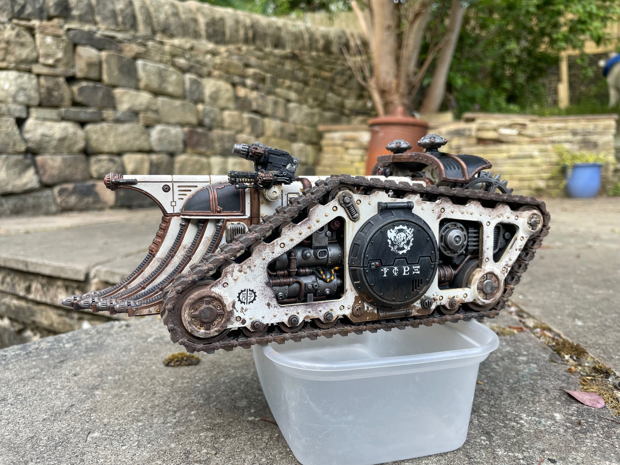 Guy Haley's all over the Black Library Weekly this week, so it's only fitting to show off this absolutely stunning Triaros Armoured Conveyor he shared this week. The weathered treading in particular is amazing work- this thing looks like it could actually be made out of metal instead of plastic.