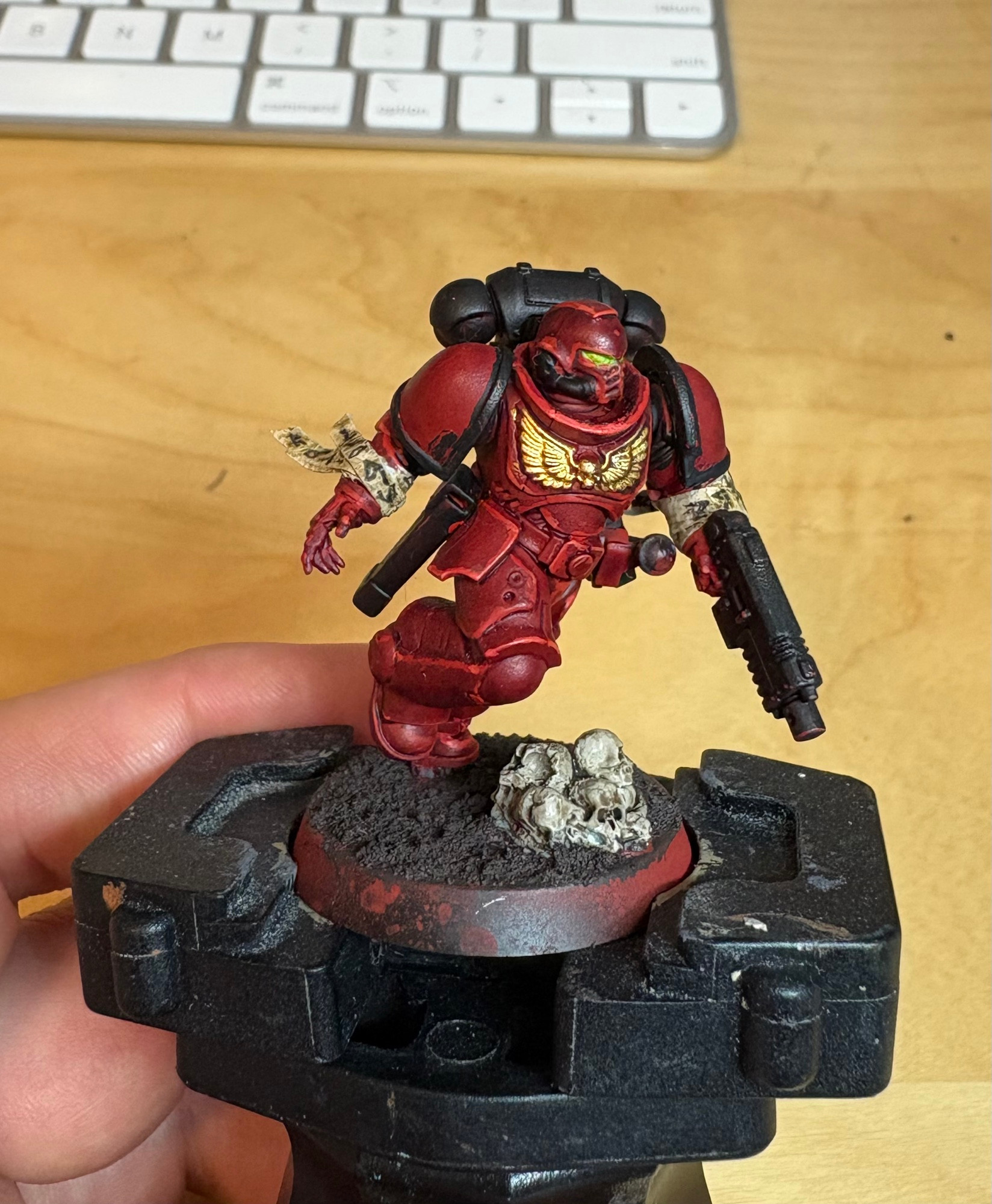 Image credit: Robert RathCheck out this work in progress from Robert Rath (The Infinite and the Divine, Assassinorum: Kingmaker). This is part of his Exorcists Kill Team, and he's been experimenting with masking tape to get that oath wrap effect.