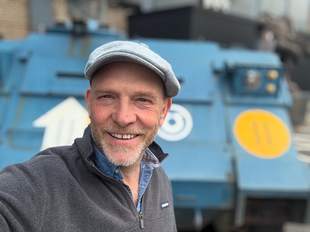 Image credit: Justin D. HillHere's Justin D. Hill (Hell's Last, The Bookkeeper's Skull) enjoying a moment in front of the lifesize replica Rhino outside Warhammer World in Nottingham.
