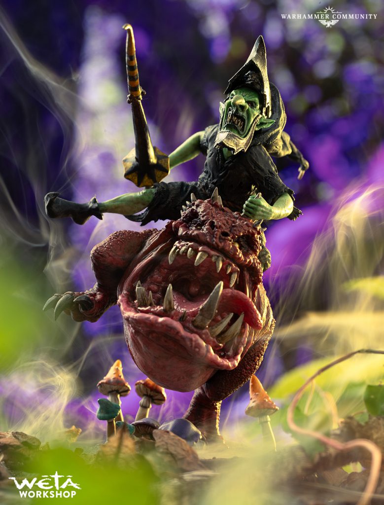 Wētā- named after the Maori name for giant flightless crickets native to New Zealand- is a special effects and costumery studio that most notably crafted the armor, weapons, and props for the Lord of the Rings films. They've also turned their craft to producing high-quality replicas and statuary for a number of different licenses, and for Warhammer this includes a range of statues as well as miniature replica helmets (such as this stunning Khorne Berzerker one).This year's offering, the Boingrot Bouncer, was an unexpected one. Wētā's statues are incredibly detailed works of art that range from USD $800 (for Skragrott the Loonking) to $1800 (for either Abaddon the Despoiler or an otherworldly Celestine the Living Saint). Skragrott always struck me as a "one of these things is not like the other" offering. I mean no disrespect to fans to fans of the Gloomspite Gitz, but is the line of fans with that kind of cash to burn truly that long? It seems like an awfully niche choice to select for a high-end collectible when, I dunno, Archaeon the Everchosen, Gotrek Gurnisson, or Malaneth Witchblade are right there.
