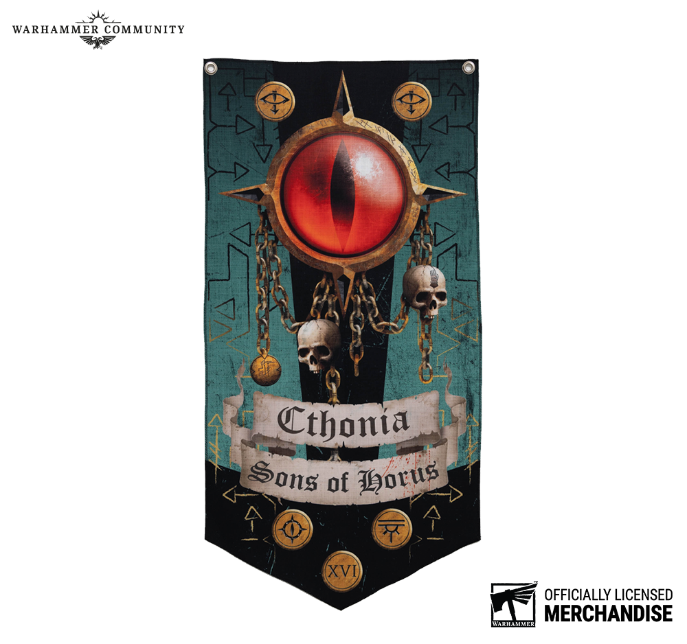 A few new reveals for the official Warhammer Merch store, ranging from new Horus Heresy-era wall banners (such as the one pictured above) to water bottles. The banners are terrific- I have one for the modern-era Night Lords- and it really ties the room together2.