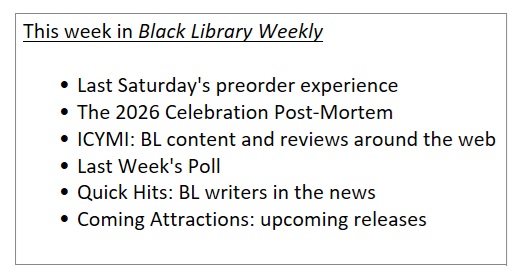 The Black Library Celebration for 2026 came and went this week, and it didn't seem to land with quite the usual reception as it has in years past.Sunday 3/8: The Preorder List Drops