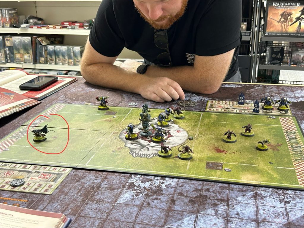 Image credit: David GuymerBlood Bowl didn't just capture Denny's passion this week as David Guymer (Verminslayer, Angron: The Red Angel) shared some pics from his most recent tilt at the table. Here he is, relishing a breakaway run from his Skaven Gutter Runner.