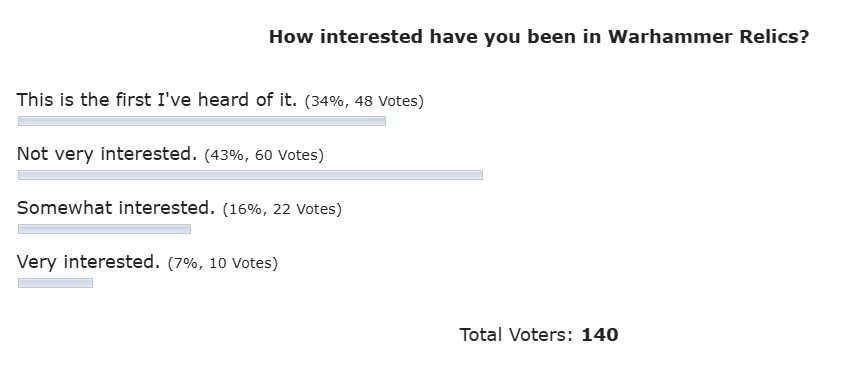 Last week we asked you about the Warhammer Relics celebration, and it looks like Games Workshop might have a little work to do to make that more of a thing.Don't get me wrong, something is (usually) better than nothing, and I for one am always happy to keep an eye out for new items to decorate the Black Library Museum with. The biggest surprise for me was that a third of poll respondents hearing about it for the very first time here on Goonhammer.