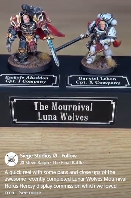 Okay, so not strictly Black Library related, but I still had to share this terrific rendition of Horus's council of advisors, the Mournival. I not only love what Siege Studios did here, but the nameplate basing is a magnificent touch. Exactly the kind of thing I'd like to incorporate into my Black Library museum!Make sure to check out this short reel for the full effect.
