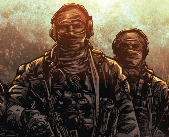 Black Powder Red Earth is a setting that has been fully fleshed out in many graphic novels and a video game available on Steam. The game and materials are very stylized with a modern feel and high quality graphic design and art.It's set in a fictional country called Awbari, currently in a civil war between Islamic extremists and the Awbari security forces. A private military contractor, Cold Harbor, has been working with the Awbari security forces to advise them. They equip, train, plan and execute counter terror raids and destroying equipment. Rare earth materials are being mined in Awbari that need to be protected and kept away from the insurgents.