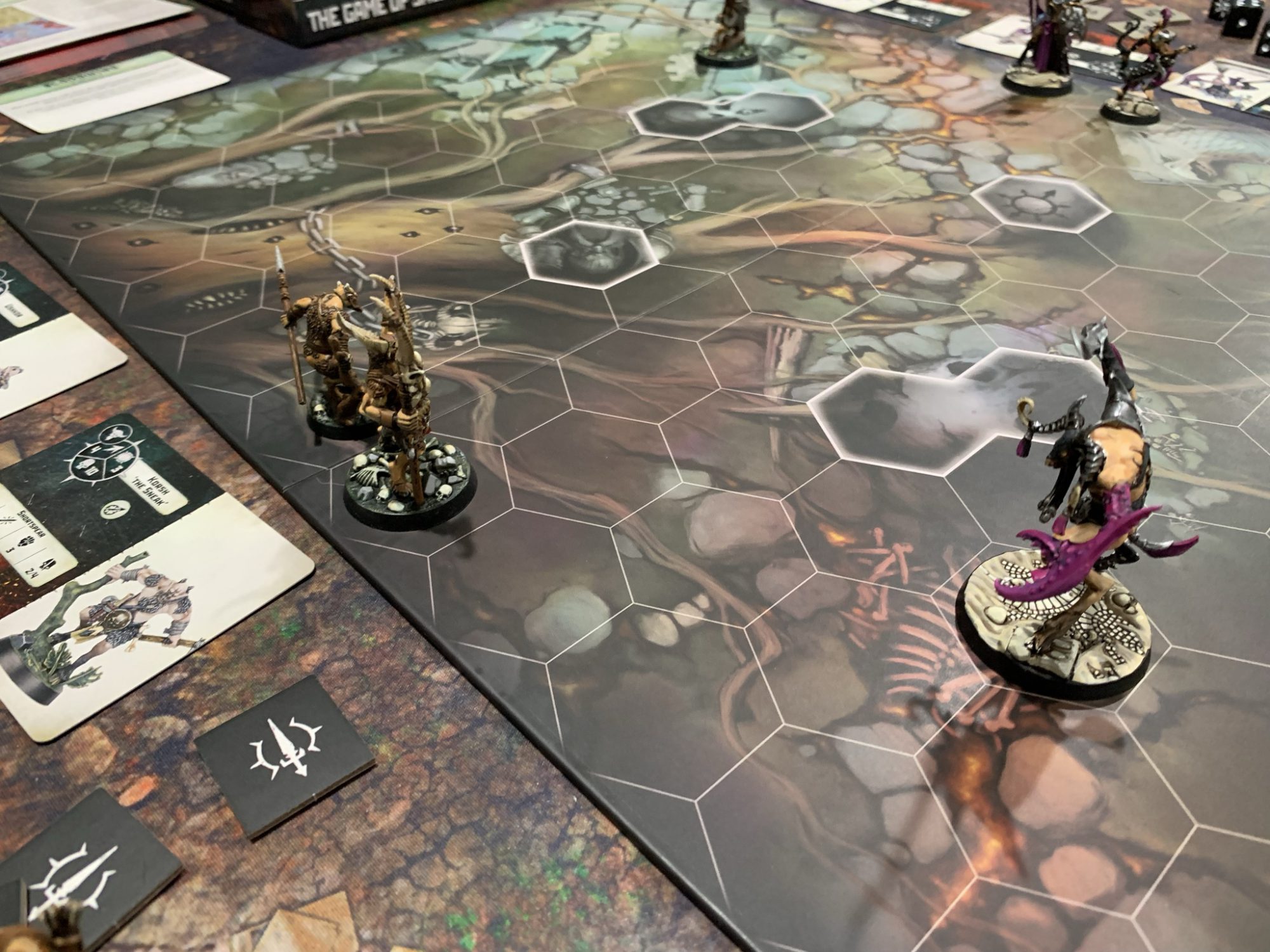 Combat plays just as quickly. Fighters are defined by a simple statline and are generally going to do 1 of 2 things on their turn: move and fight. There is minimal ranged combat in Bladeborn so fighting tends to mean getting up close and personal. Objective placement and round-by-round scoring ensures play is dynamic, as does the ability system.