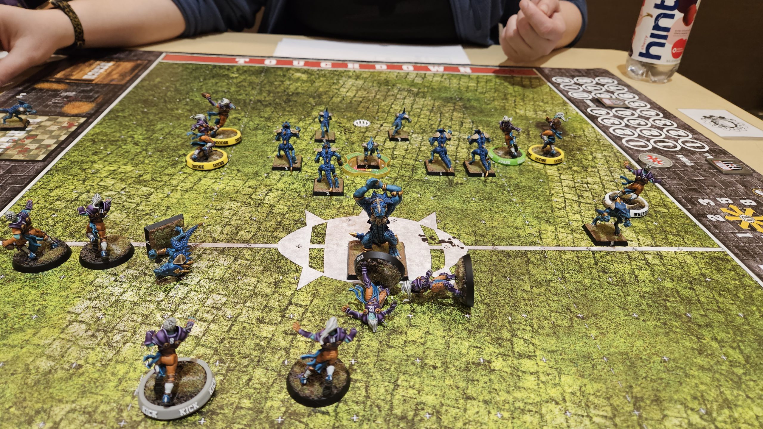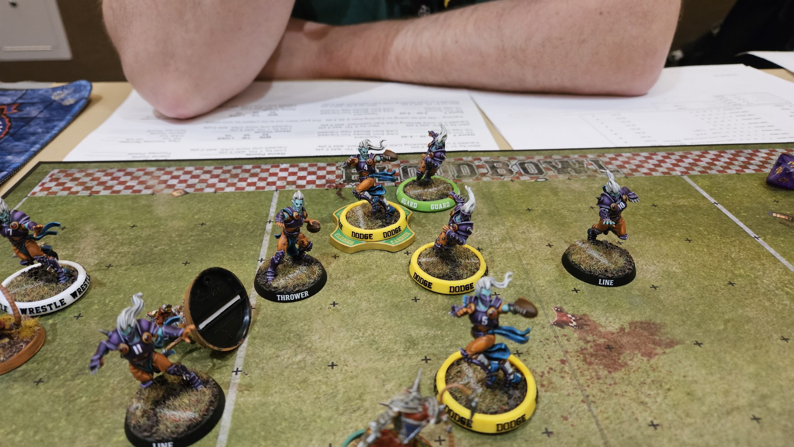 Pictured: Things actually working.He’s receiving in the second half, and we’re running into a problem. We’re given 2 hours to play our games, and the first half took about an hour and twenty minutes. We’ve got to pick up the pace in the second half if we want to get all 16 turns in. John gets the ball and sets his ratty lads for a clock-eating score. I’ve got to play more aggressive defense if I want to get that ball out, but, as usual, Blodge is a fake skill when my guys have it. He eventually gets a score in as round time runs out on his turn 15. Had we played a quicker game, I could have had time to grab the last-second score, but alas, I end up on the wrong end of a tie.