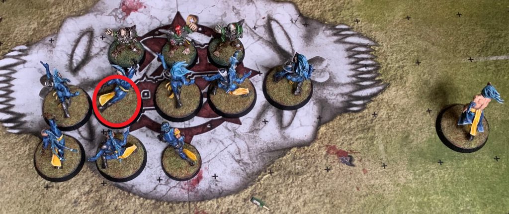 The Wood Elf Lineman removes the two Saurus assists, preparing the way for the Wardancer to attack the ball carrier.Once you’re in you have to hit the ball carrier of course, but this also needs some planning before you make the blitz, so that you remove as many assists as possible and get the best amount of Block dice. Assuming there is no Guard involved, just one of your players basing the two opponents on whichever side of the cage you attack from is enough to remove their assists. Depending on the circumstances, and especially where the opponent does have Guard in play, your own assists and strength might not be enough to make that hit better than 2D against. At that point this tactic should be limited to desperation only, or when you have specialists with skills like Strip Ball or Wrestle.