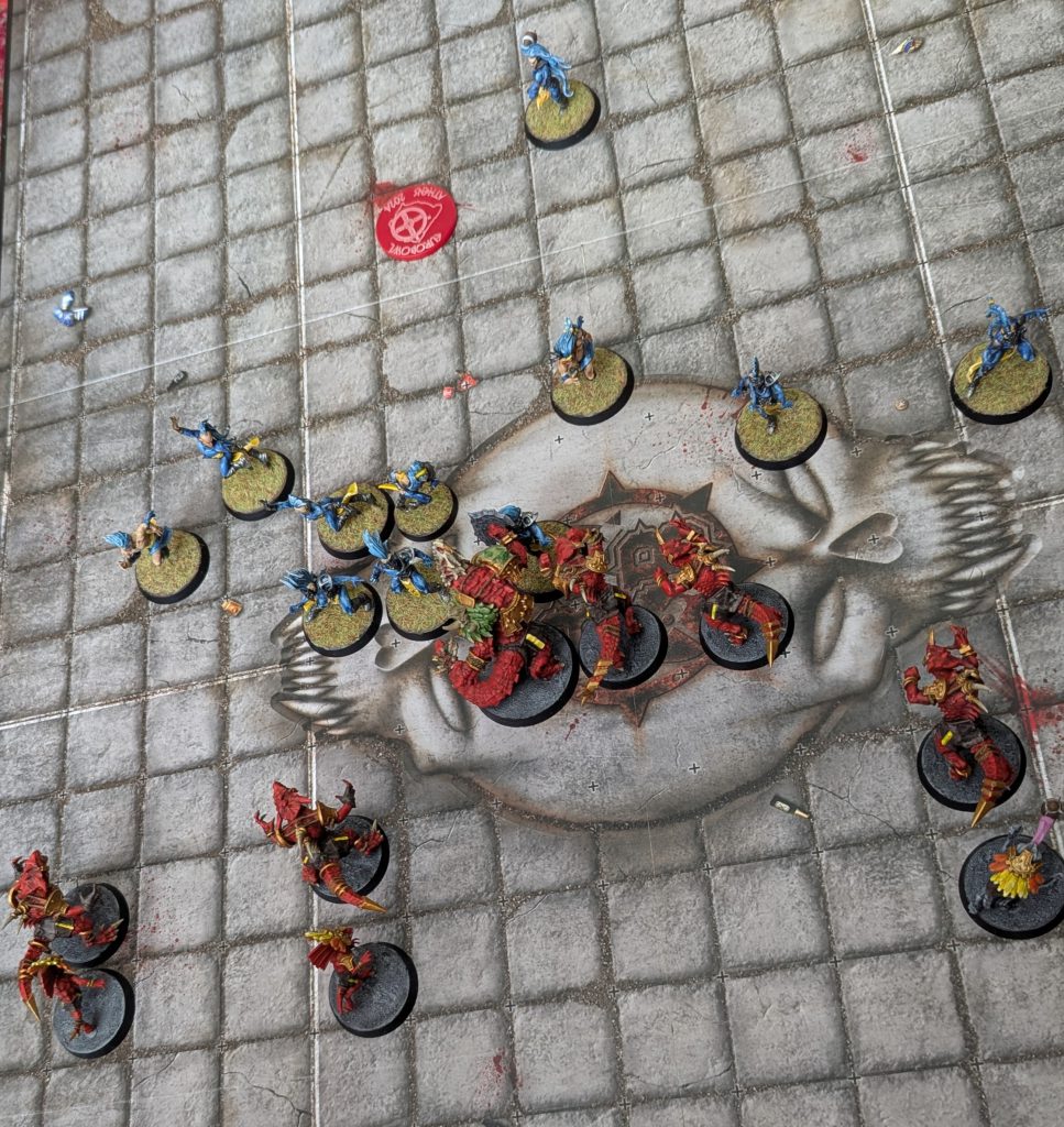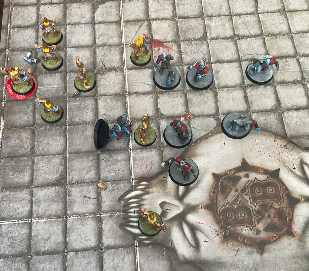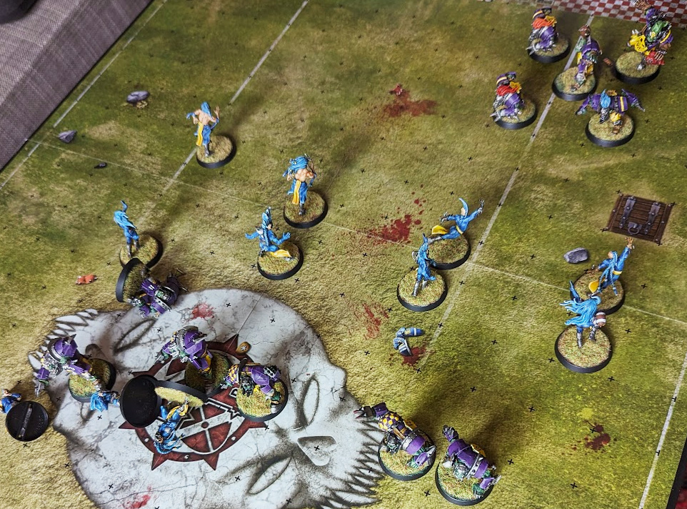 The High Elves have flooded numbers into the Norse backfield and created screens to try and stallThere are a couple of techniques to stalling, but the general gist is that you keep your opponent at arm’s length and use your mobility to eat up turns while you position for an eventual score.